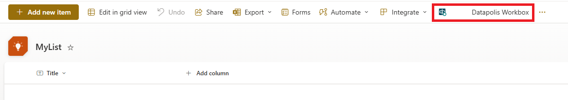 Workflow Administration is necessary to create a workflows. When Datapolis Workbox is installed on the SharePoint website you can see an icon Datapolis Workbox. It is visible in the red frame in the screenshot below.