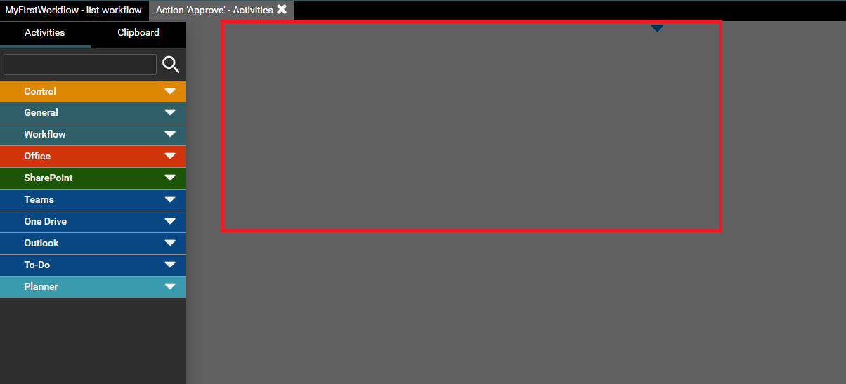 The designer for the activity will open. The area in which you assign activities is marked with a red frame.