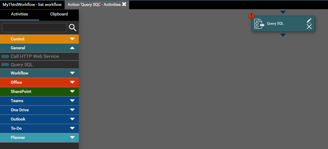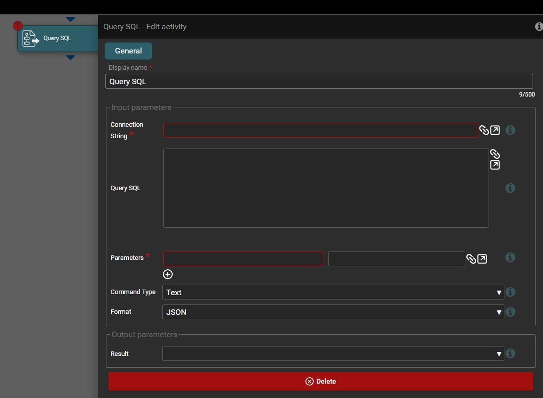 This is an activity from the General group. Activity allows to communicate with SQL database