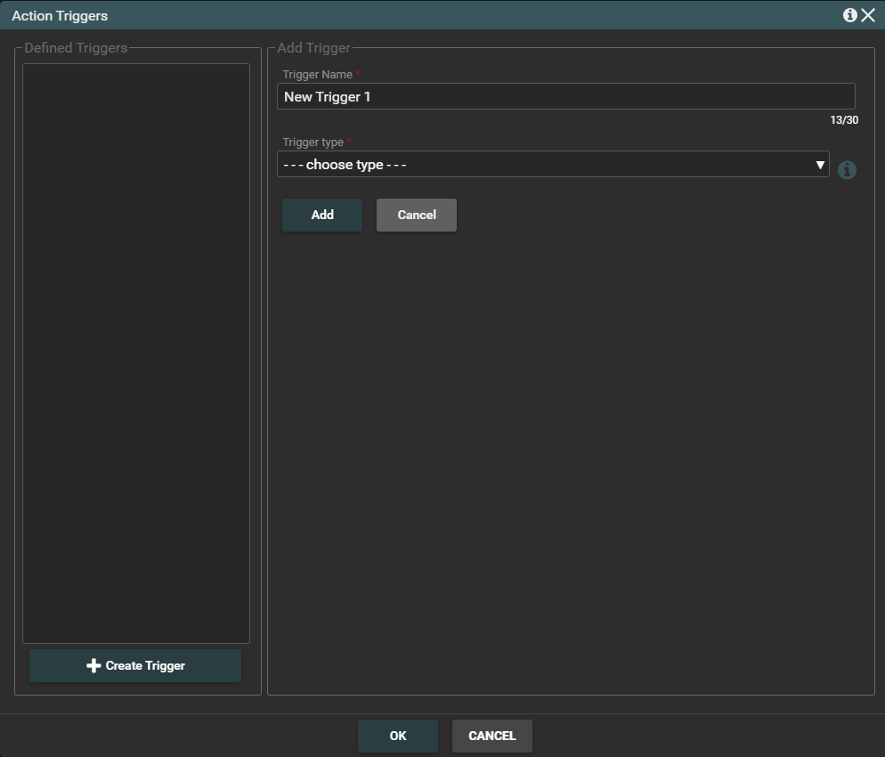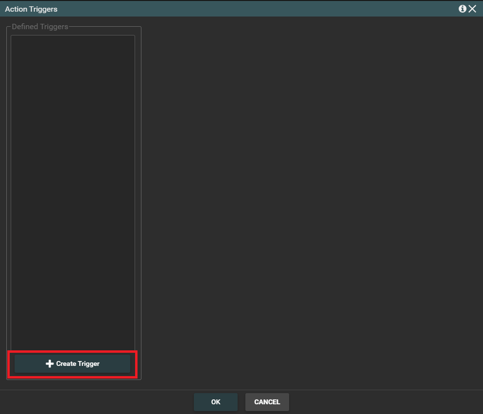 Let's add a trigger for an action. First we need to open the state menu, then select Action Triggers. After a while, a window will open in which you can add a trigger.