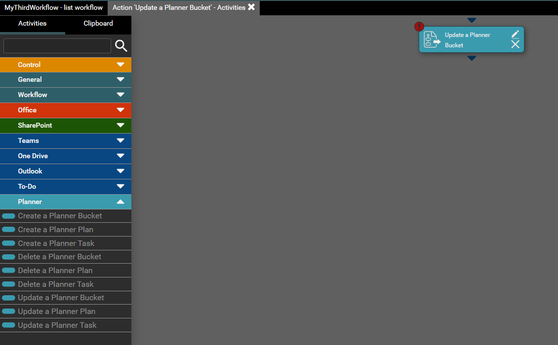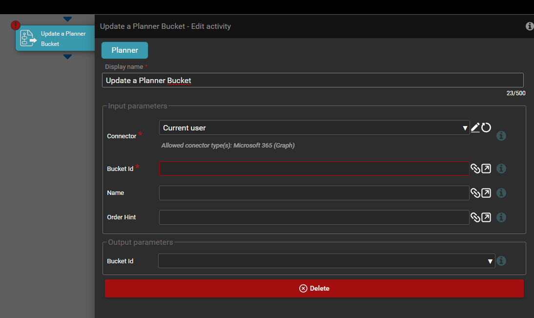 Activity allows to update a Planner Bucket in Microsoft Planner application.