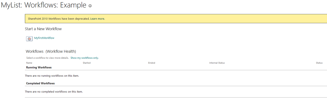 Then you will see a list of available workflows where you can choose which one you want to start. The workflows page looks like this:
