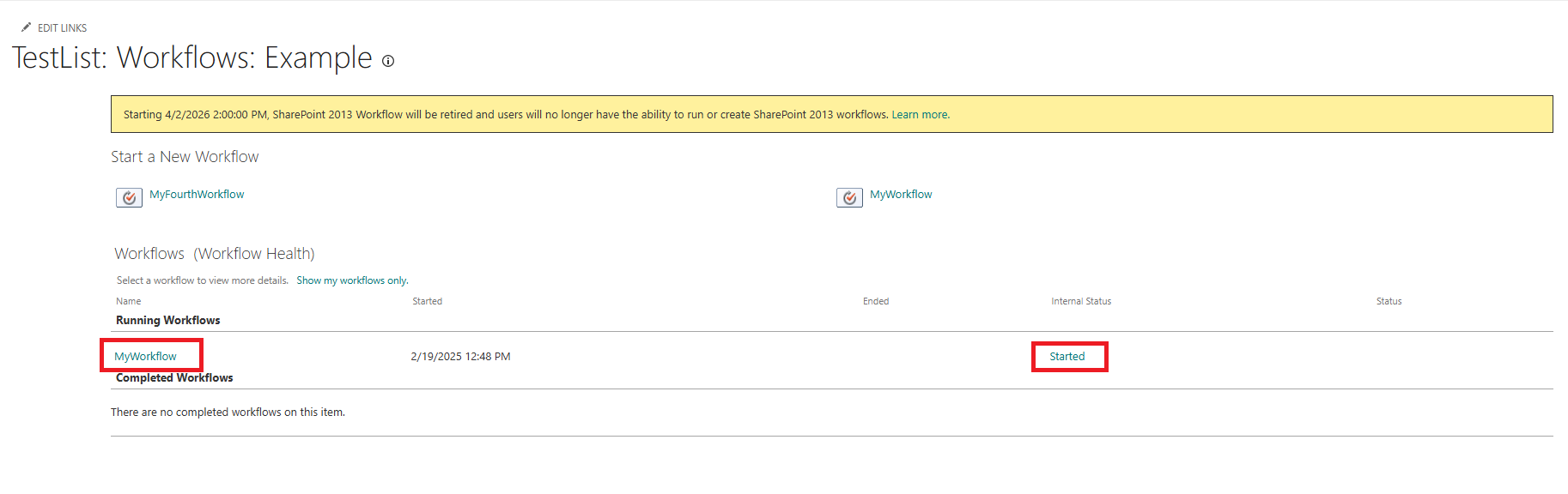 Than you choose and click on the name of workflow which history you want to see. Clicking on the name will open the page with the history of the workflow.