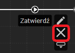 - Po najechaniu kursorem myszy na akcję wyświetlone zostanie menu akcji. Należy kliknąć drugą ikonę. Ikona ta służy do usuwania akcji. Następnie otworzy się okno modalne potwierdzające usunięcie akcji. Aby zakończyć operację, kliknij przycisk OK.