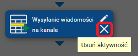 Aby usunąć aktywność, należy kliknąć ikonę X na wybranej aktywności. Wyświetlone zostanie okno modalne, w którym należy potwierdzić operację. Aktywność zostanie usunięta.