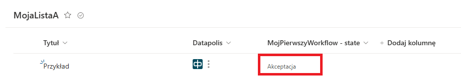 Jeśli w formularzu ustawień przepływu pracy zaznaczone są pola wyboru „Gdy tworzony jest nowy element” lub „Gdy element jest zmieniany”, uruchomienie przepływu pracy nie wymaga żadnych dodatkowych czynności.