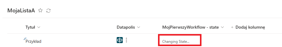 Przepływ zostanie uruchomiony. W kolumnie opisującej stan, w którym znajduje się przepływ pojawi się napis „Changing State...”.